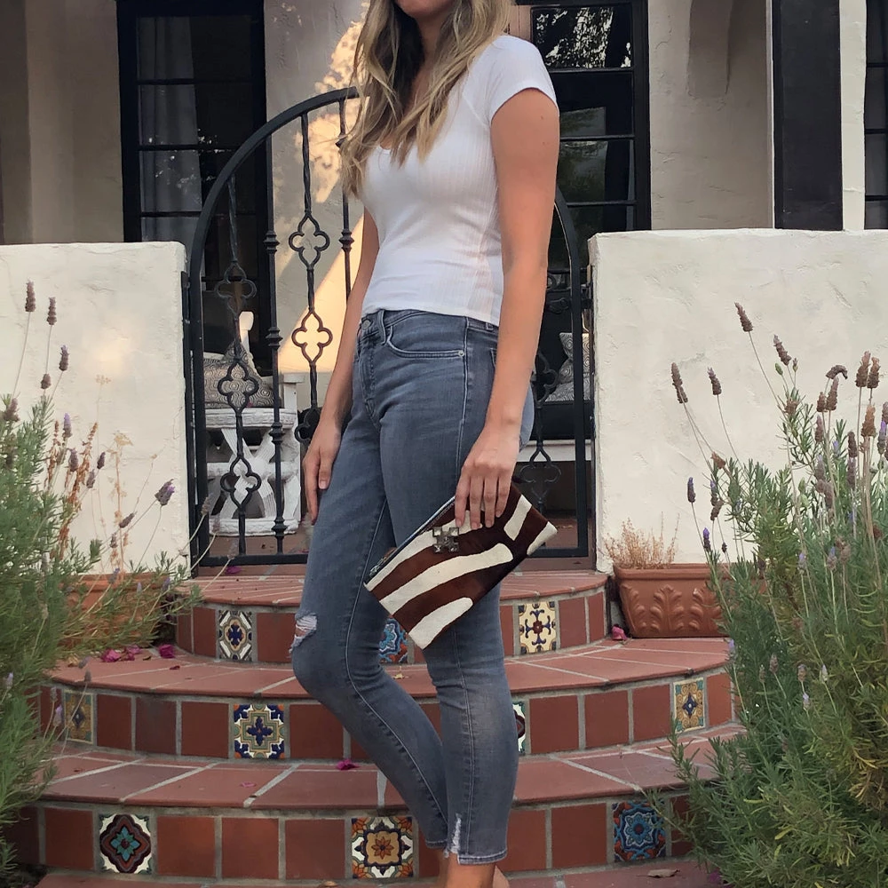 - Note: Each wallet/clutch uses a piece of authentic hide, therefore the hide pictured may not have the exact same shape or pattern. Some lines or spots may be larger or smaller; some colors may be more or less prominent – making each hide Wallet/Clutch one-of-a-kind.