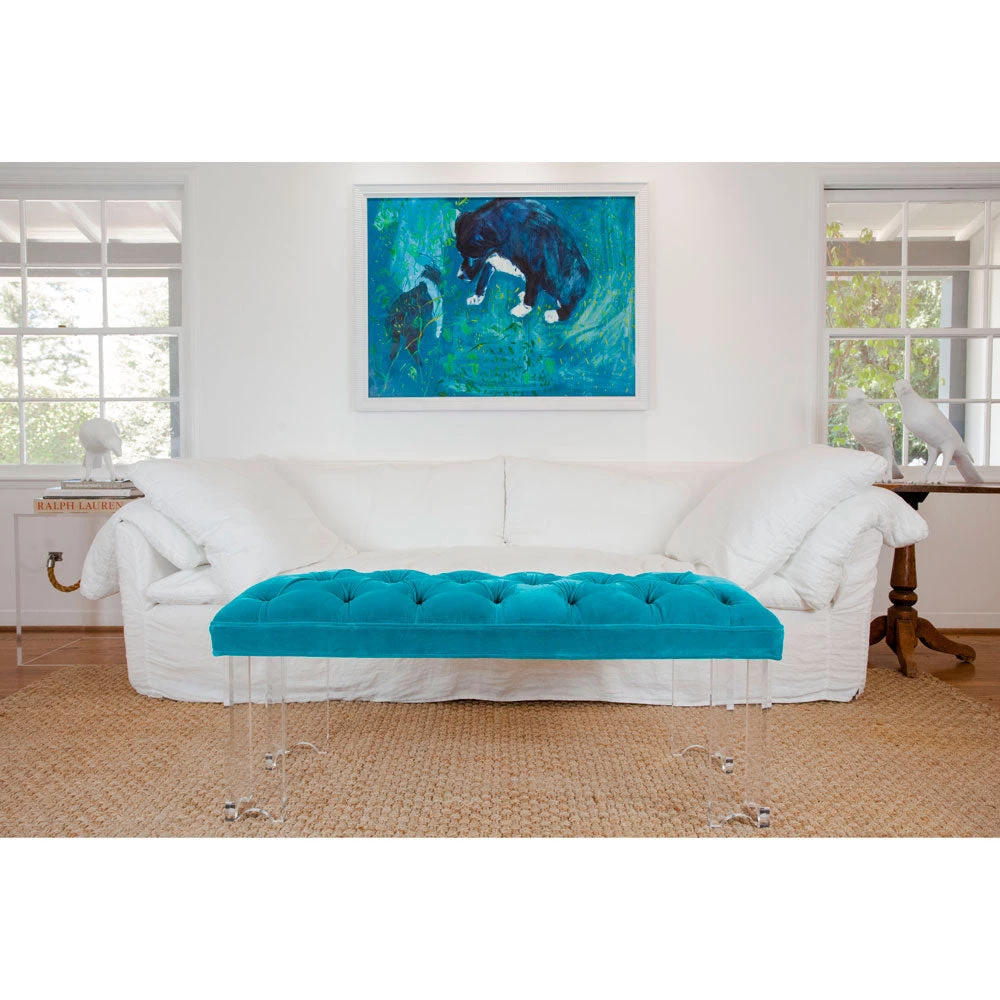 This is the perfect piece to add a little modern, rustic luxe accent to your room. This Arched 4 Legged Bench has a high quality acrylic base with a tufted cushion (with piping or nail head trim) will be a great piece for stylish accent and extra seating.