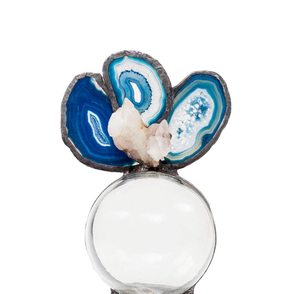 Want to bring an organic feel to your home décor? This small float is embellished with natural Blue Agate with unique vibrant blue patterns, and a White Geode. Its simplicity is sure to add a touch of class to any room in your home.