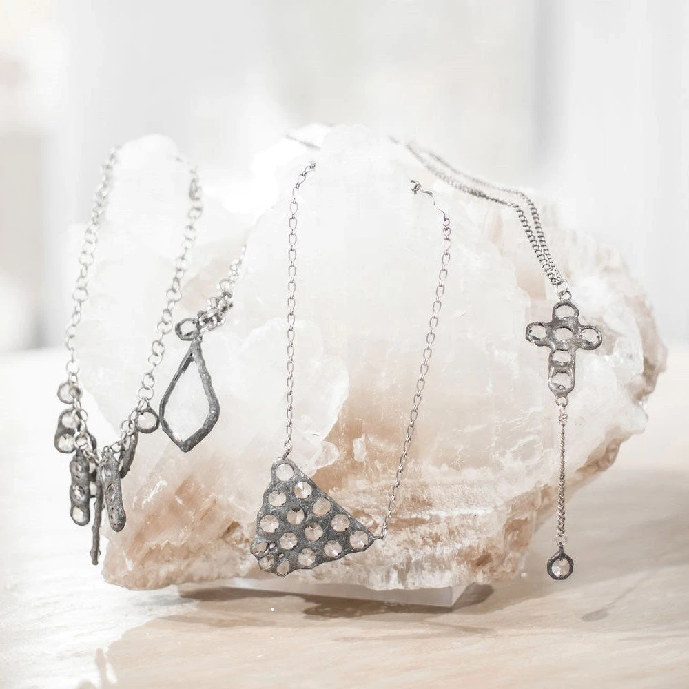 Pieces in our collections are handmade with natural sea life, geode stones, and crystals. All are unique in appearance and will vary slightly in character, size, color, etc. No two are alike making your Jamie Dietrich piece truly one of a kind.