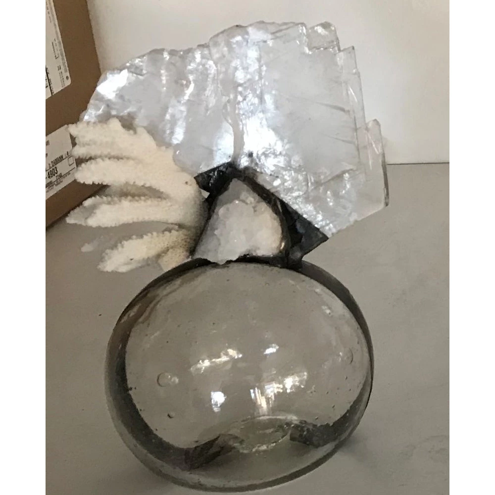 Create a truly unique atmosphere with this exquisite round glass float embellished with White Coral, Geode and Selenite Slab. The Selenite gives this float a modern coastal vibe. This classy piece is a perfect addition to any room.