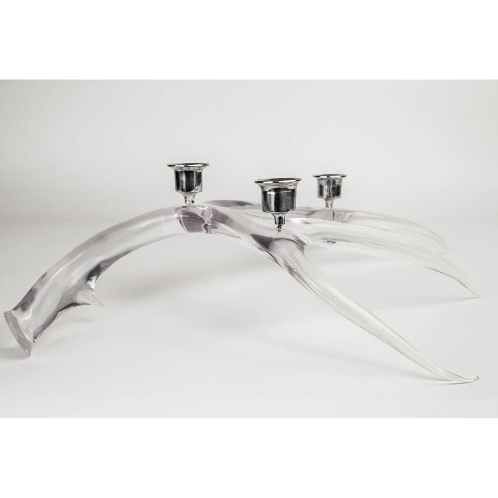 This high end clear resin Deer Antler Candelabras allows you to enjoy candle light in a unique way.  The candelabra holds three tealight or votive candles at various heights.Â