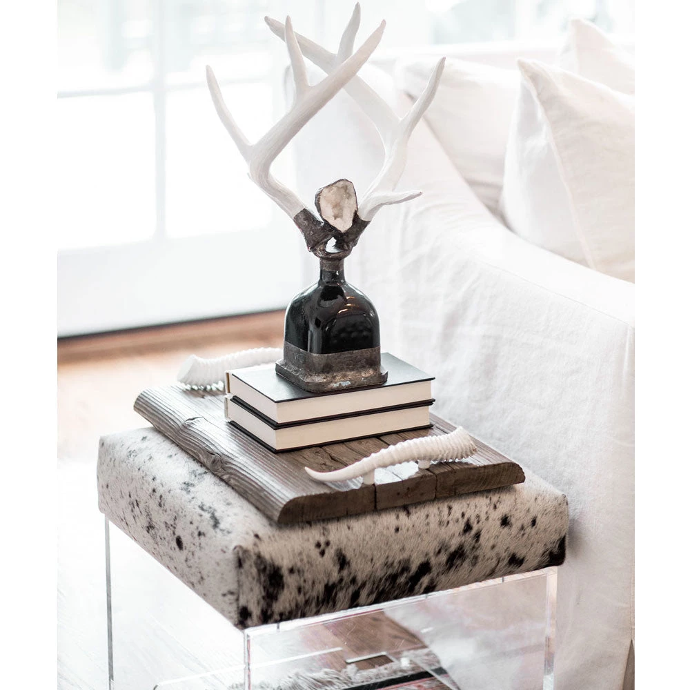 Our uniquely designed Double Medium Antler Bottle is elegant and rustic at the same time. This bottle features 2 medium size antlers hand embellished with geodes and or stones. This Antler Bottle delivers a compelling accent placed alone, or within a collection.