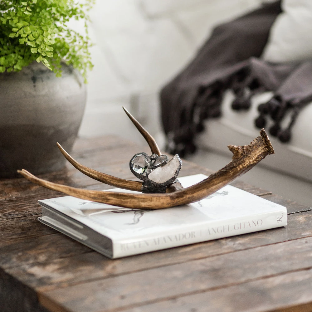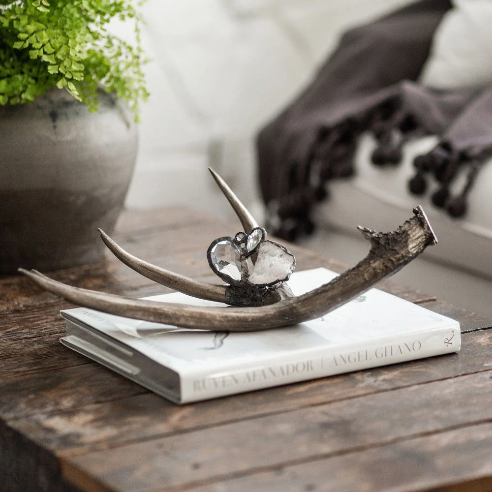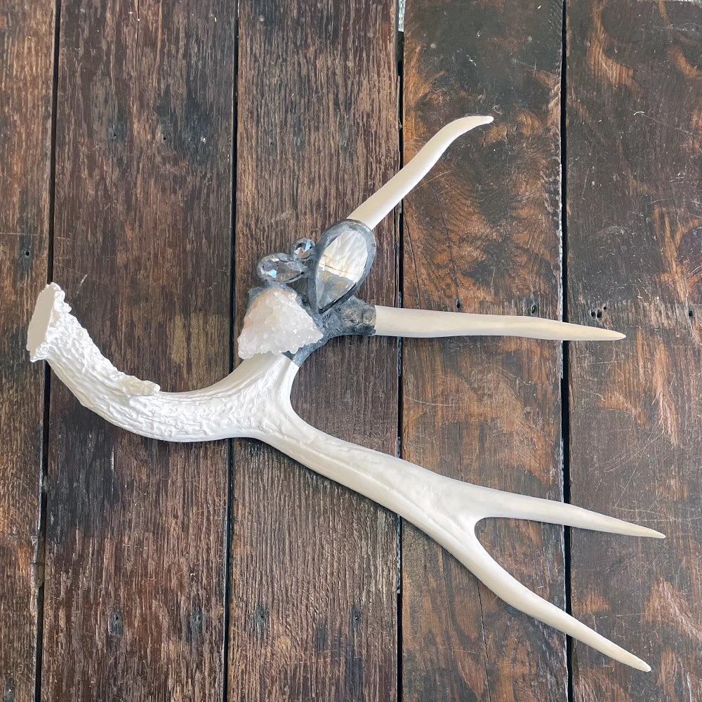 Brimming with beauty these high-end resin antlers are hand embellished with crystals, geodes and or stones. They come in 5 colors options and are sure to add uniqueness and charm anywhere you place them.