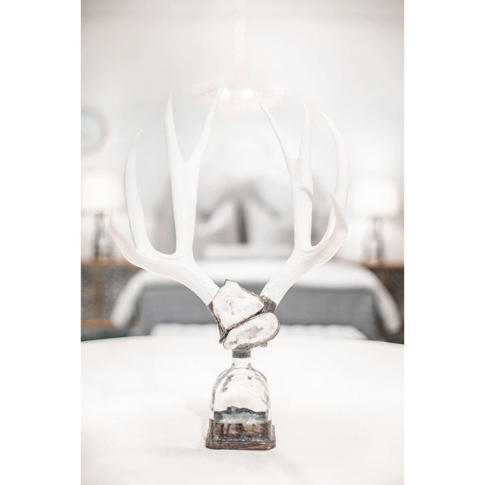 Our Double Large Antler Bottle strikes a uniquely elegant design with a modern twist. It features 2 large antlers with hand embellished crystals and stones. This timeless piece will steal the spotlight wherever you place it.