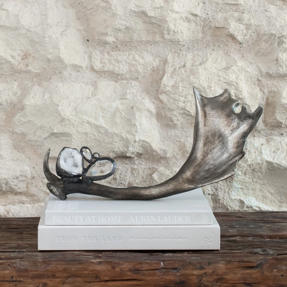 Brimming with beauty these high-end resin antlers are hand embellished with crystals and geodes. They come in 3 colors options and 2 embellishment options and are sure to add uniqueness and charm anywhere you place it.