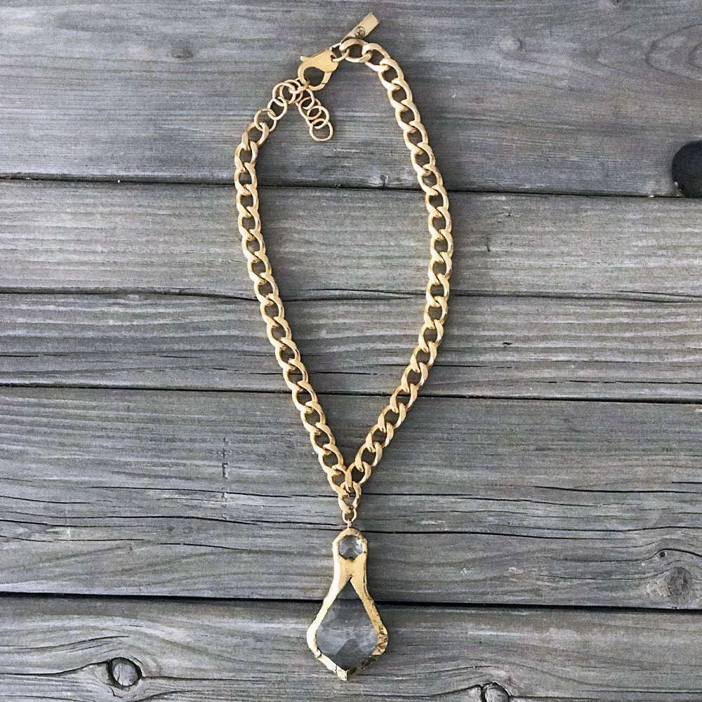 Our Lucia necklace is hand crafted in the USA, and hand dipped in 18 karat gold. It’s a are part of our “Making a Difference” line, which means Jamie Dietrich will donate 5% of the sale of this piece to her favorite charity.