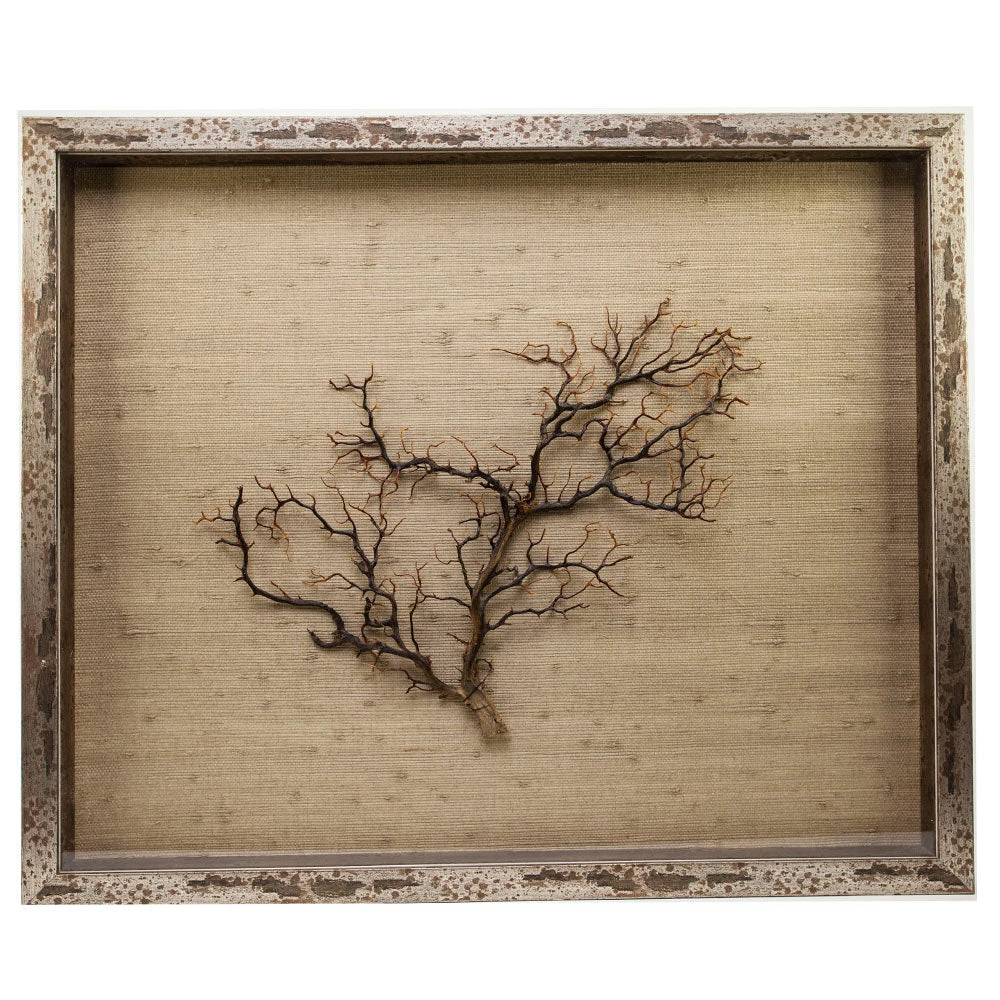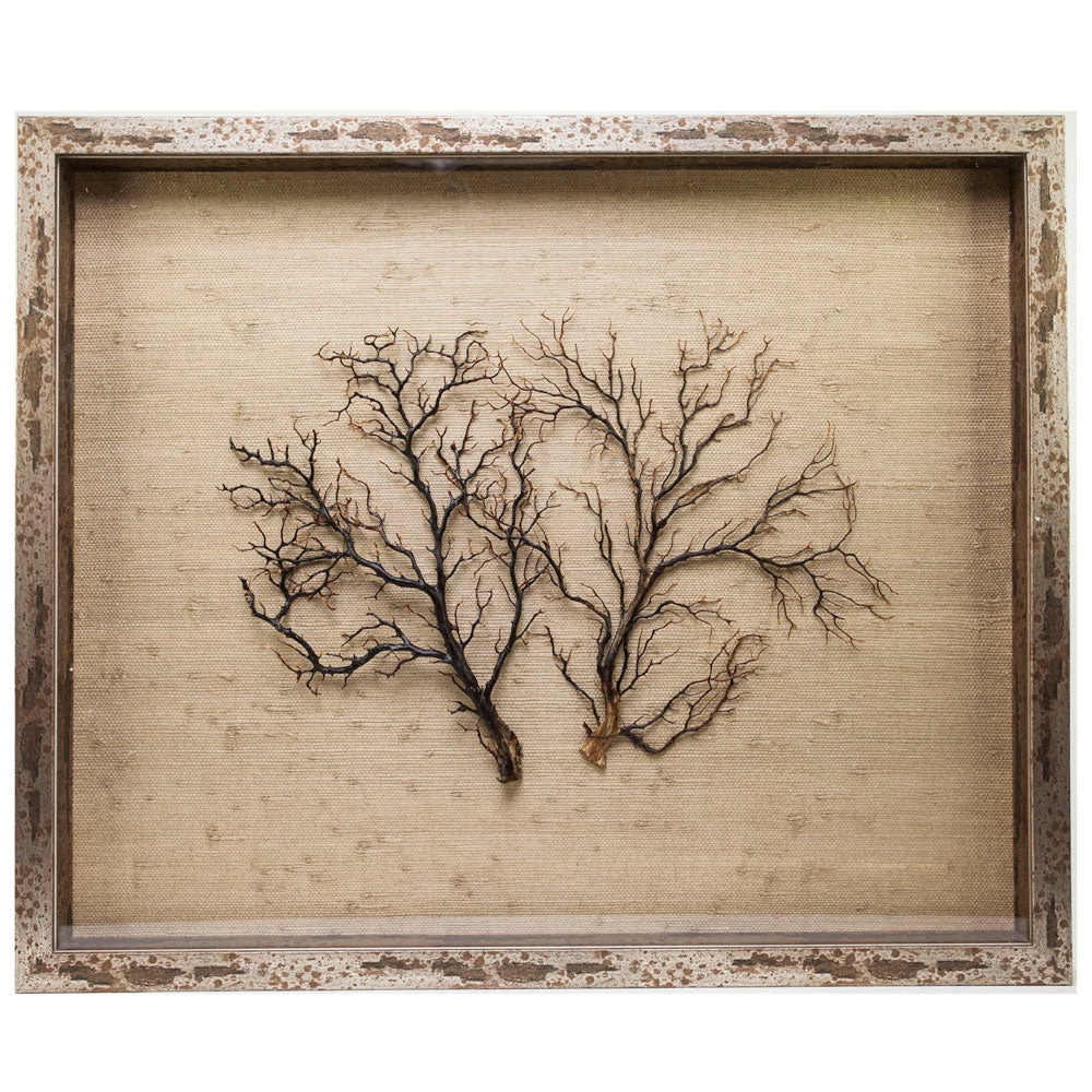 This hand-crafted shadow box features natural sealife mounted on a grass cloth backing set inside a deep 2” frame with a plexi glass front. This coastal-inspired art piece is impressive on its own, paired, or grouped together in gallery setting.