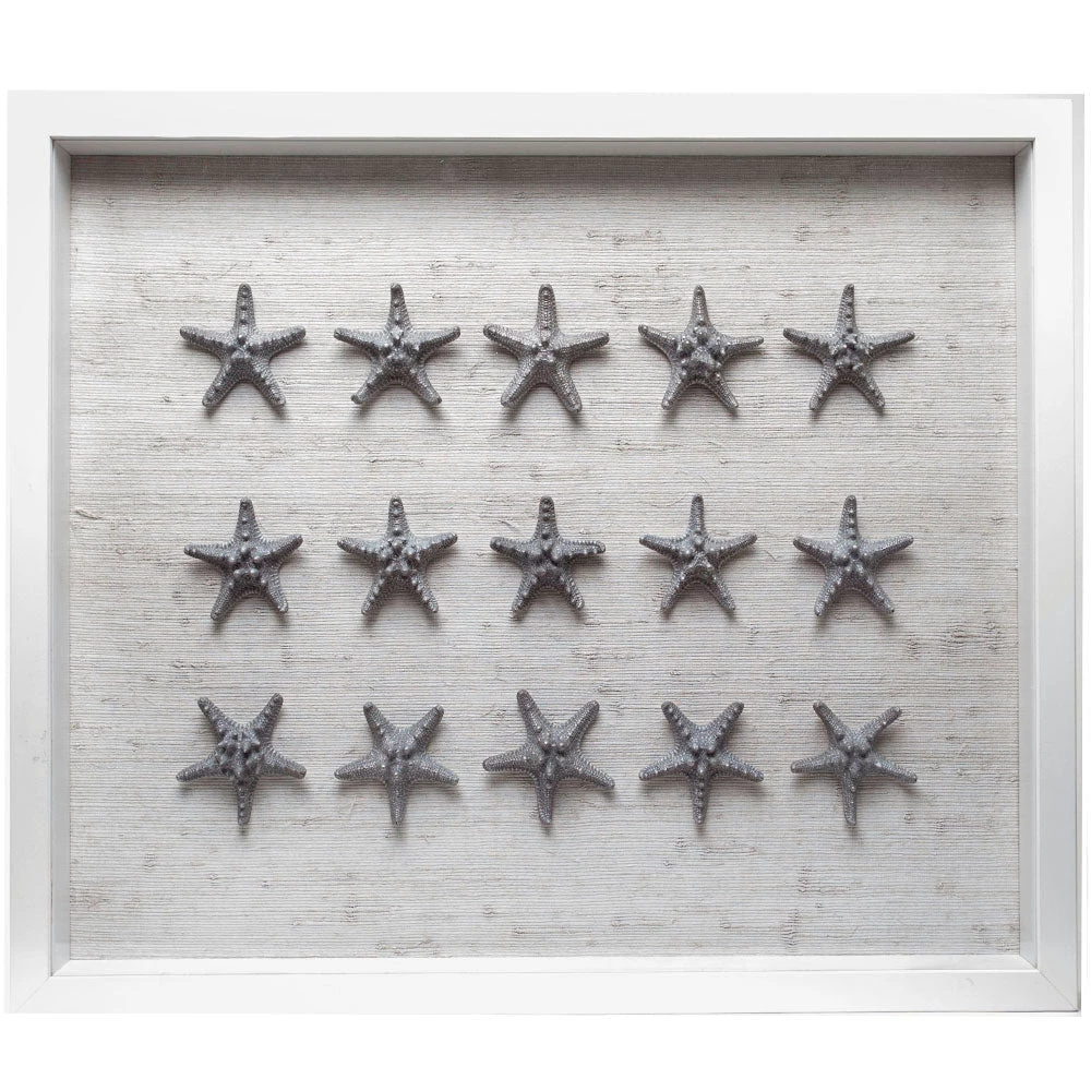 This hand-crafted shadow box features natural sealife mounted on a grass cloth backing set inside a deep 2” frame with a plexi glass front. This coastal-inspired art piece is impressive on its own, paired, or grouped together in gallery setting.